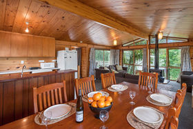 The home itself has a great wood finished interior and with plenty of windows, the home floods with natural light. Best of all, for winter stays the home is equipped with a pot-belly fireplace in the lounge, and with plenty of couches there is a space for everyone to cosy up and enjoy the warmth.