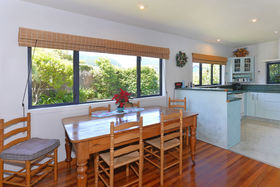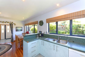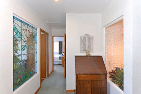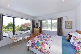 The main floor boasts 3 bedrooms, kitchen, main living area with gas fire & heatpump, separate dining, full bathroom and spa room.
