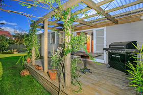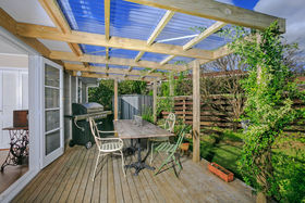 There is plenty of room in the back garden for children to play safely and for you to establish a garden. Mature fruit trees populate the fully fenced garden; guava, feijoa, apple, mandarin, (plus the resident wood pigeons) are all found on the 752 sqm (mol) site.