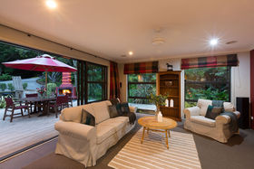 Instantly appealing the designer style kitchen is large and well-appointed with a generous scullery tucked in behind. Entertain family and guests in the open plan kitchen, dining, living area, or retreat to the formal living area. On fine occasions sit outside on the deck by the outdoor fireplace. The indoor/outdoor connection is fundamental to the success of the home. Enjoy the sounds of birdsong and the nearby creek from inside the house or from your private spa area off the master bedroom.
