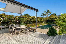 Ficus framed, black and white tiled steps guide you into this warm and inviting character home thoughtfully updated while retaining the authentic charm of original timber floors, barn style doors opening off the kitchen and separate laundry, and sets of French doors leading to expansive decks overlooking a glorious backyard with in-ground pool. Sunny open plan living flows from a fabulous kitchen - a sophisticated blend of shaker style cabinetry, grey veined granite, a long stainless island plus a free standing multi oven sure to delight the family chef. Step down to a spacious lounge and out to a sun drenched deck covered with a sky roof and enhanced by fairy lights and unique antler chandelier. A home you will love entertaining in, while watching over swimmers enjoying the beautiful pool and sheltered back garden.