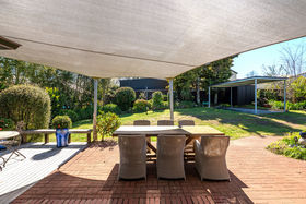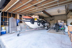 Out back, a fourth bunkroom connects seamlessly to the home, while a sun-soaked patio under a generous shade sail provides the perfect entertaining space, looking over the private lawn. A single carport sits tucked into the rear, while a substantial double garage beneath the home is ideal for boats, cars, and all the toys.