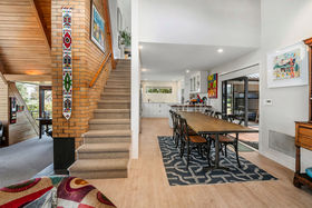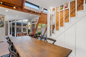 Inside, the home has been extensively modernised while retaining its original character. A step-down lounge, curved brick-clad hallway, timber ceilings with exposed beams, and expansive windows all frame the ever-changing views. Quality soft furnishings and thoughtful design create a warm, inviting atmosphere filled with light and space.