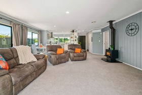 Inside, year-round comfort is assured with double glazing throughout, a freestanding Metro fire with wetback, heat pumps, and a ventilation system, all working together to provide a warm, healthy home environment.